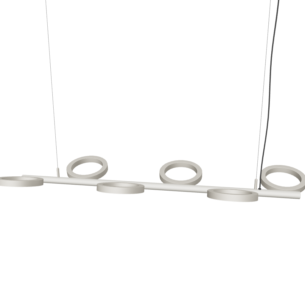 De zes schijven zijn voorzien van geïntegreerd LED, met een totaal energieverbruik van 58 Watt, een lichtopbrengst van 3800 lumen en een kleurtemperatuur van 3000K.
